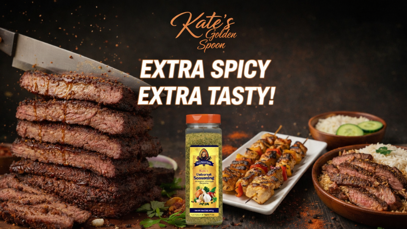 Take the bold taste of Kate's Golden Spoon home with our signature seasoning blend. Perfect for meats, vegetables, and everything in between.
